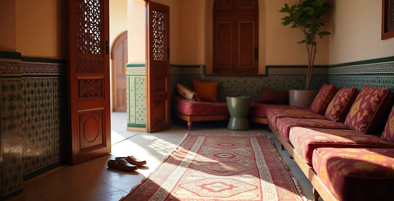 L’invitation est arrivée. Vous voilà sur le seuil d’une maison marocaine, le cœur battant d’excitation et d’une légère appréhension. La porte s’ouvre, un sourire chaleureux vous accueille, et la première question fatidique vous traverse l’esprit : « Dois-je enlever mes chaussures ? ». Cette interrogation, simple en apparence, est la porte d’entrée vers un univers de codes et de traditions où chaque geste a un sens. L’hospitalité marocaine, la fameuse « Diyafa », est un art, un véritable dialogue silencieux qu’il convient de comprendre pour ne pas commettre d’impair.